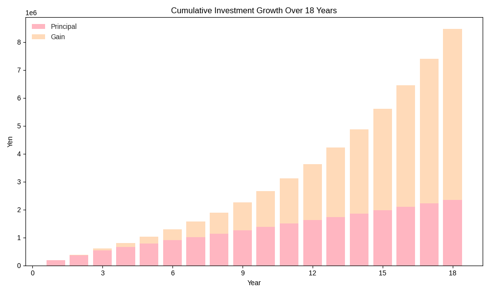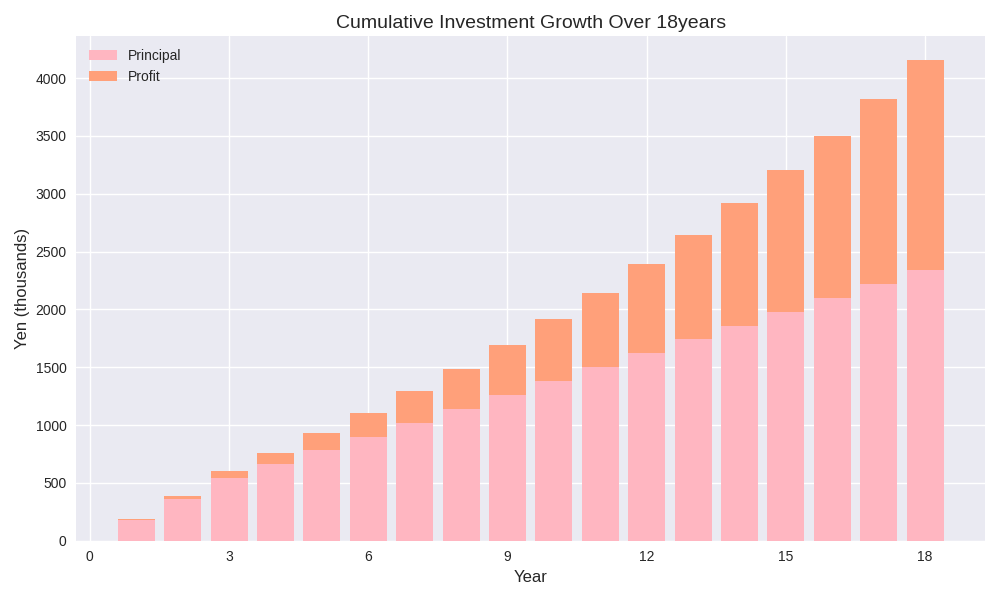 • 積立金額: 最初の3年間 毎月15,000円、その後15年間毎月10,000円